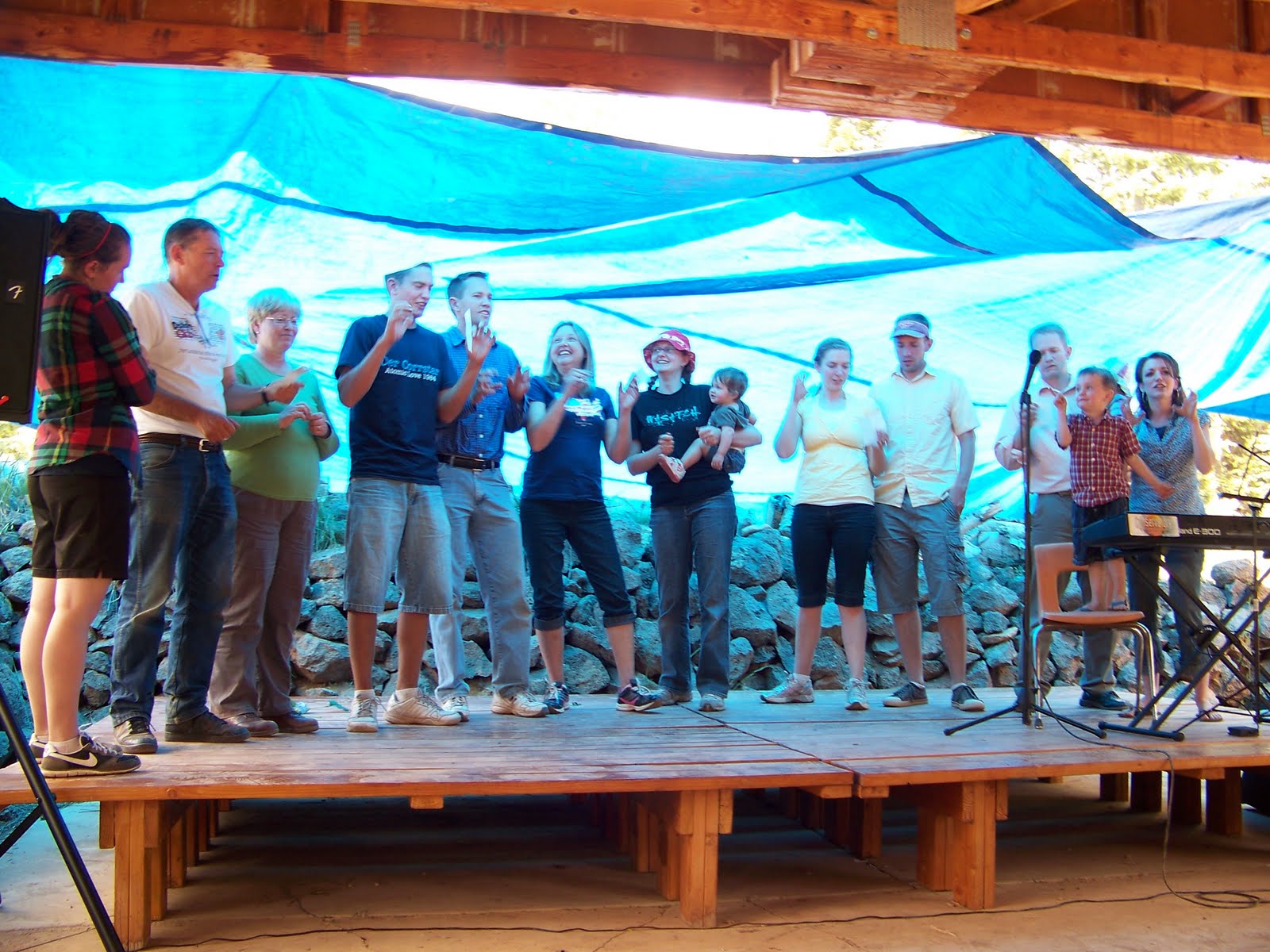 We also had the annual work project. Everyone in the whole family gets together for two hours and all take on a job around the property. The kids color quilt blocks and bring water to the hard workers. Wood is cut. Weeds are sprayed. Fences are fixed. Family history is shared. And something is always being built. They always come up with something great to put on the property to make it more fun.